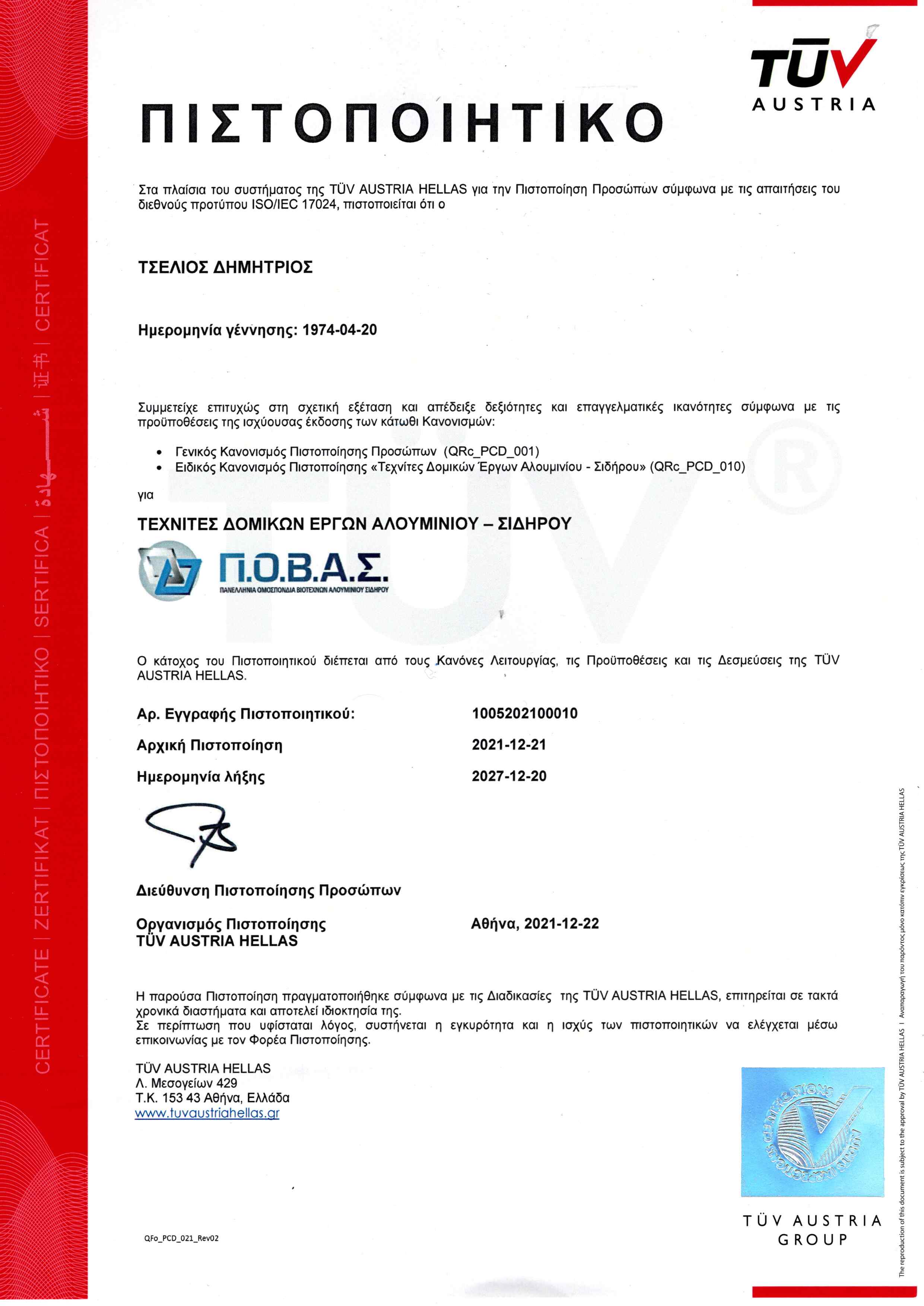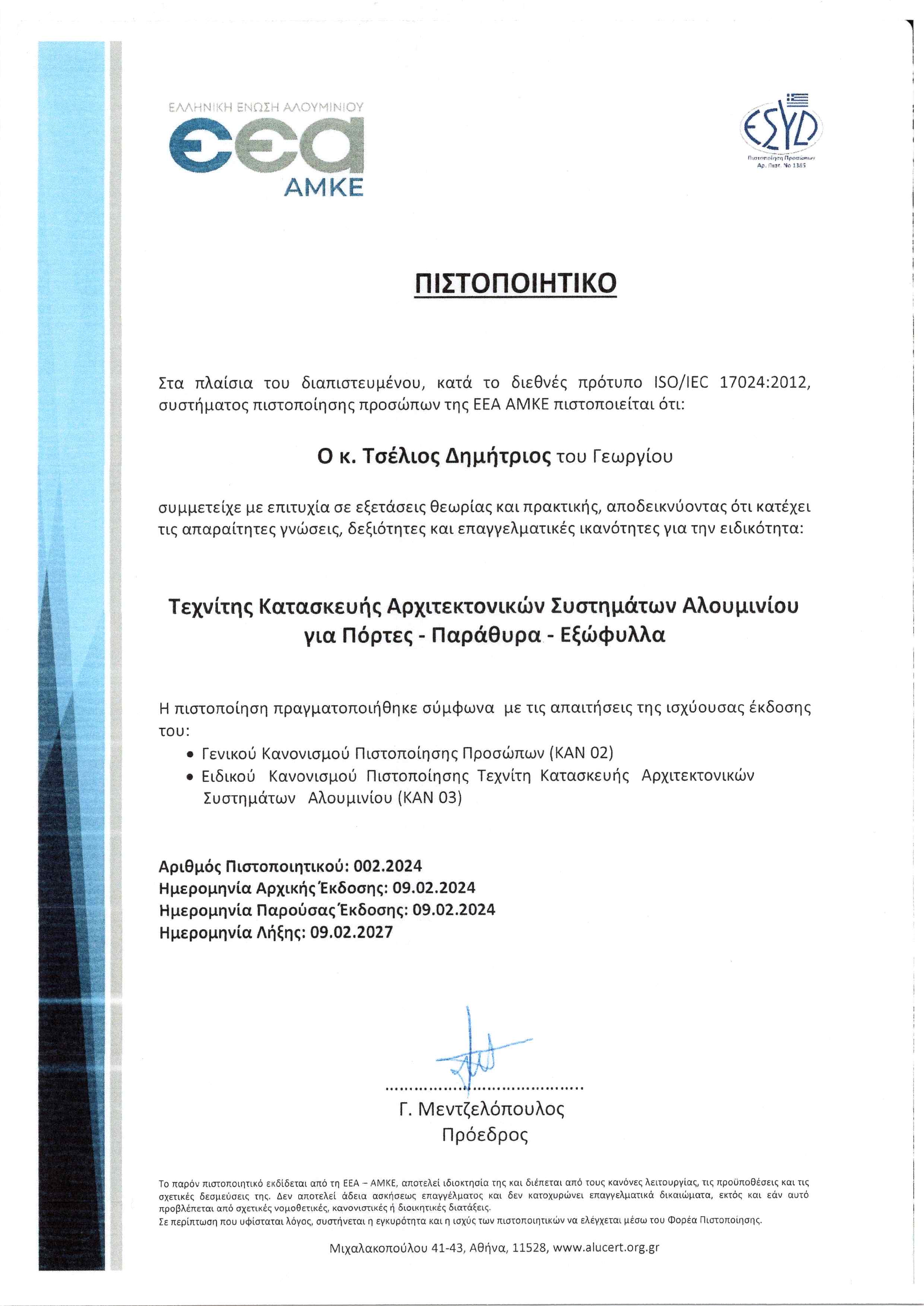 Είμαστε άρτια εκπαιδευμένοι και γνωστές στην κατασκευή και τοποθέτηση κουφωμάτων αλουμινίου, σύμφωνα με το περιεχόμενο του τεχνικού εγχειριδίου που χορηγεί η ΕΤΕΜ Α.Ε.